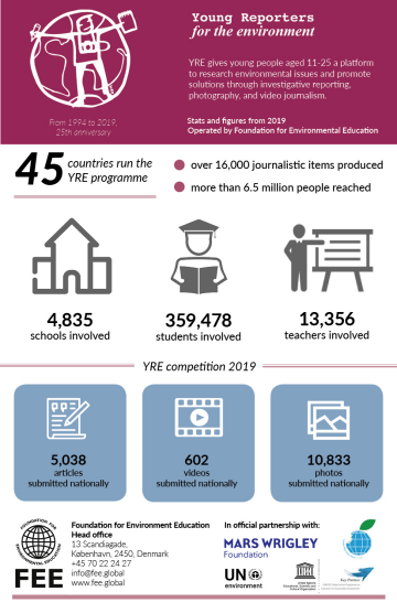 Jak si vede program Mladí reportéři pro životní prostředí v roce 2019? Slaví 25. výročí svého založení a počet zapojený zemí, škol a žáků stále narůstá. Podívejte se na nejnovější infografiku.